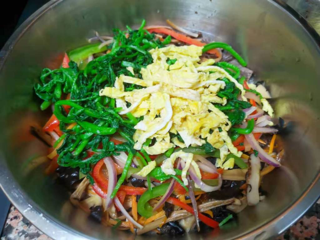 Mixed vegetables about 1 pound (I used bell peppers, carrot, mushroom, water spinach, black fungus, red onion)