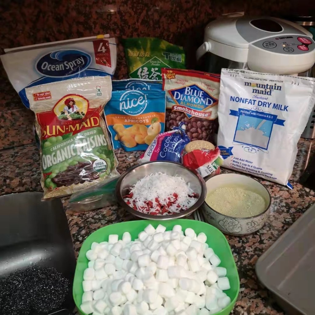 Add 1/3 of rice to the water and red rice yeast mixture, sprinkle 1/3 of the white wine yeast on the top, add 1/3 more rice to it and repeat the above procedure until everything is put in the container.