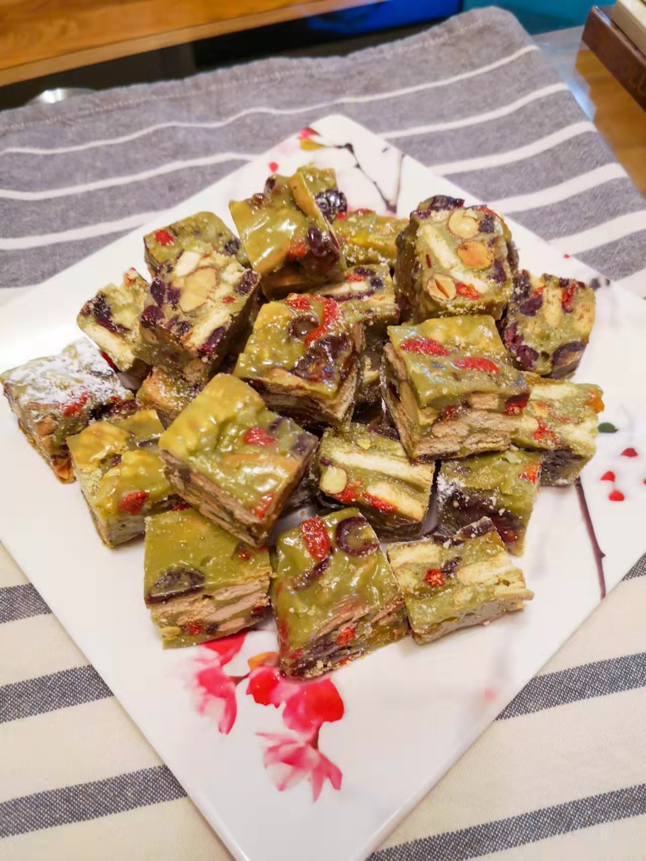 When the butter and marshmallows are well combined together, add the milk powder and green tea powder that have been sifted together, turn off the heat and continue to stir until fully mixed.