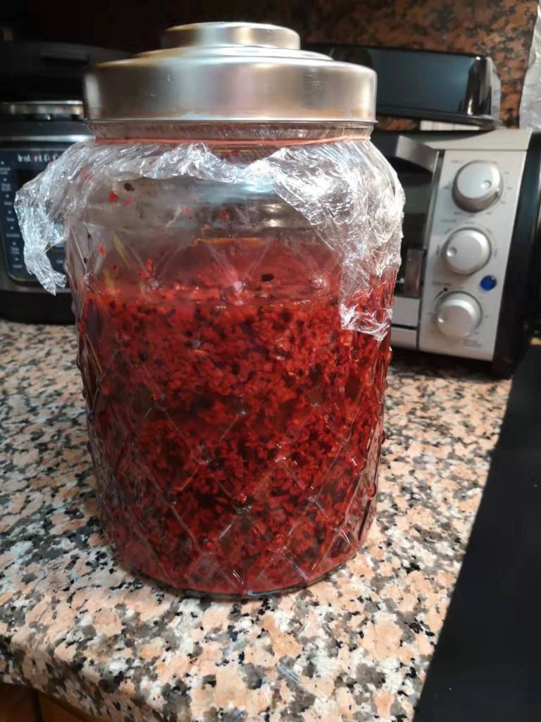 A month later, the wine is ready to drink or used as cooking wine and the anka sauce is also ready to use.