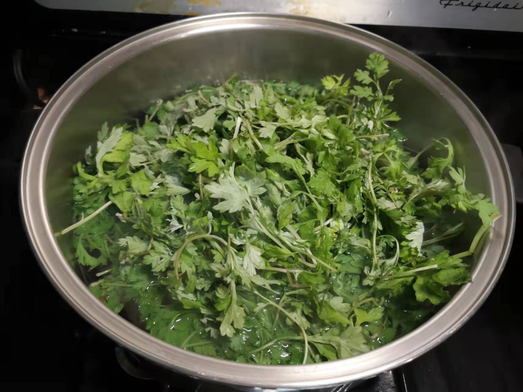 Bring a pot of water to boil, add the washed wormwood and baking soda and cook one minute.