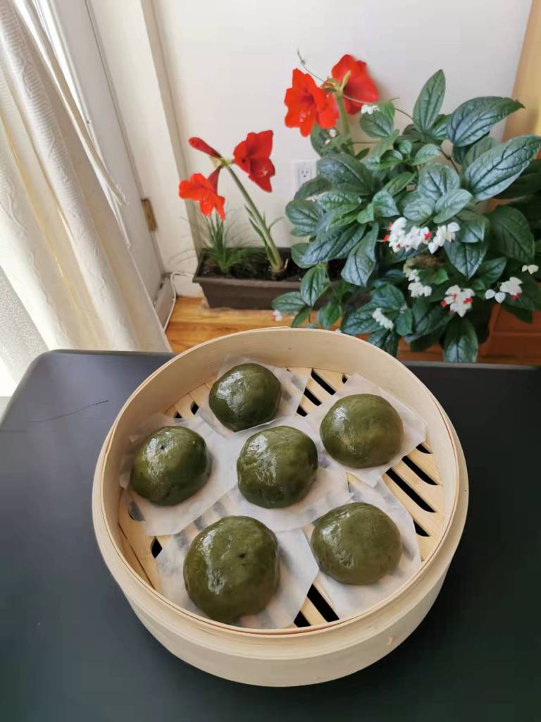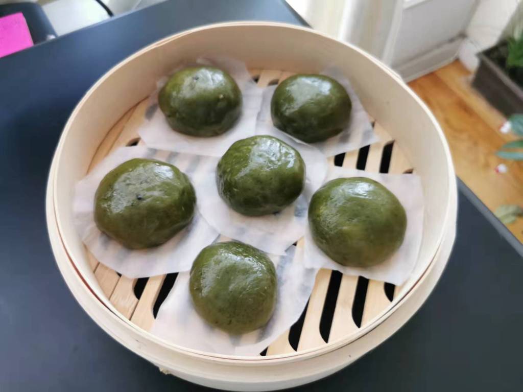 After all are done put each on parchment paper and put them in bamboo steamer and steam over boiling water for 12 minutes.