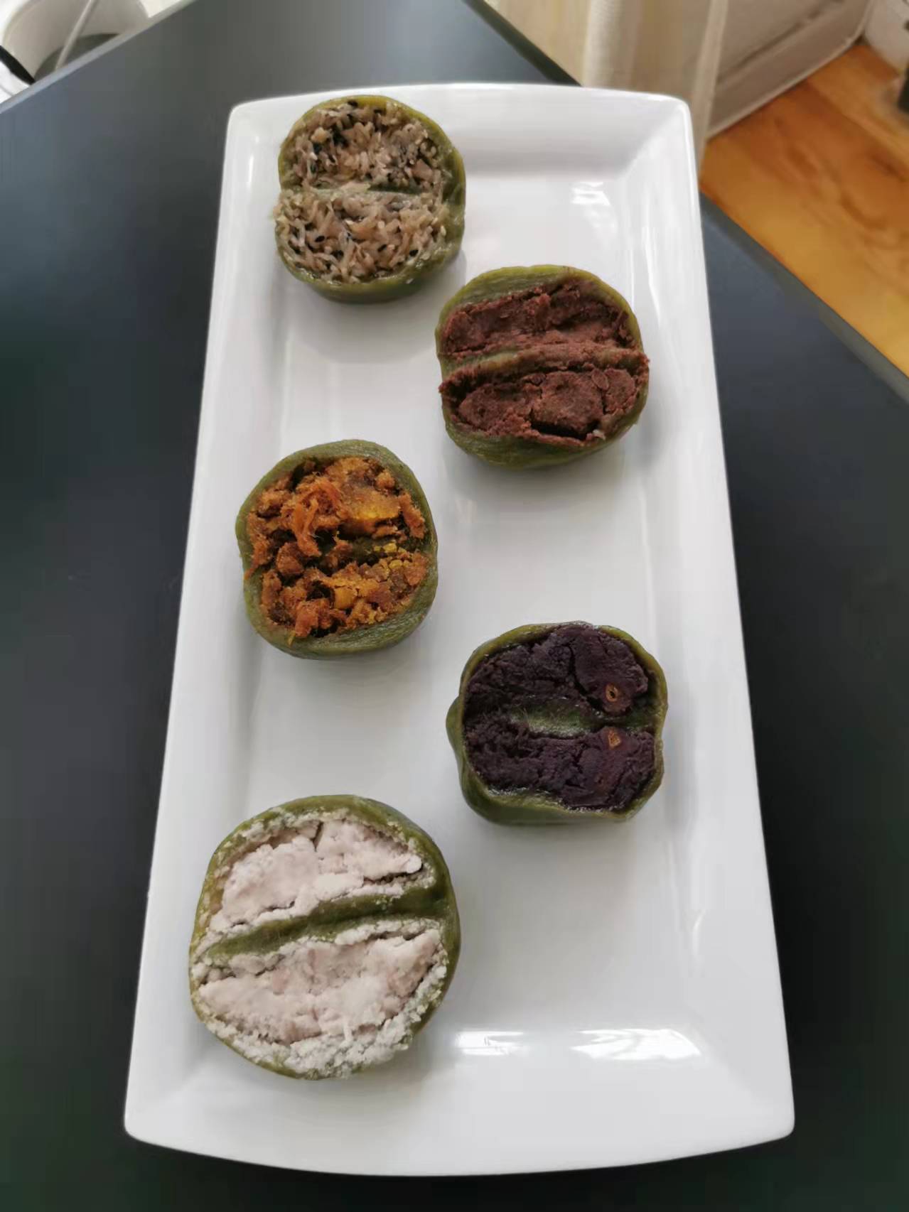 Divide the bean paste and taro paste into about 30 grams each, and the wrapper about 40 grams each.