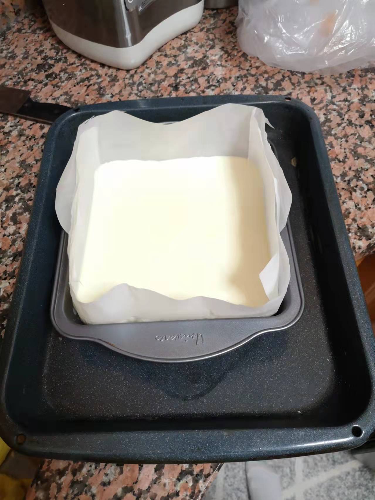 When done use the edge of the plastic wrap to pull the whole thing out of the pan and leave it on a plate.