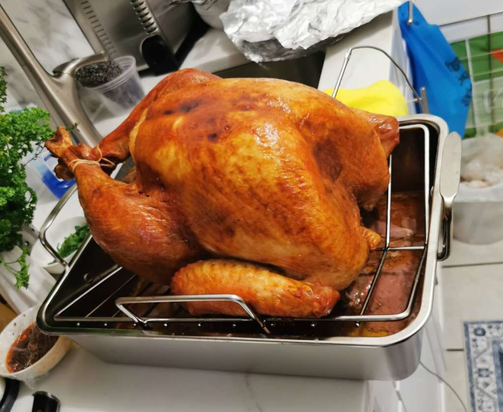 As usual I used Alton Brown’s brined turkey recipe. I won’t even try to use any other recipe! Look at the color, so gorgeous!