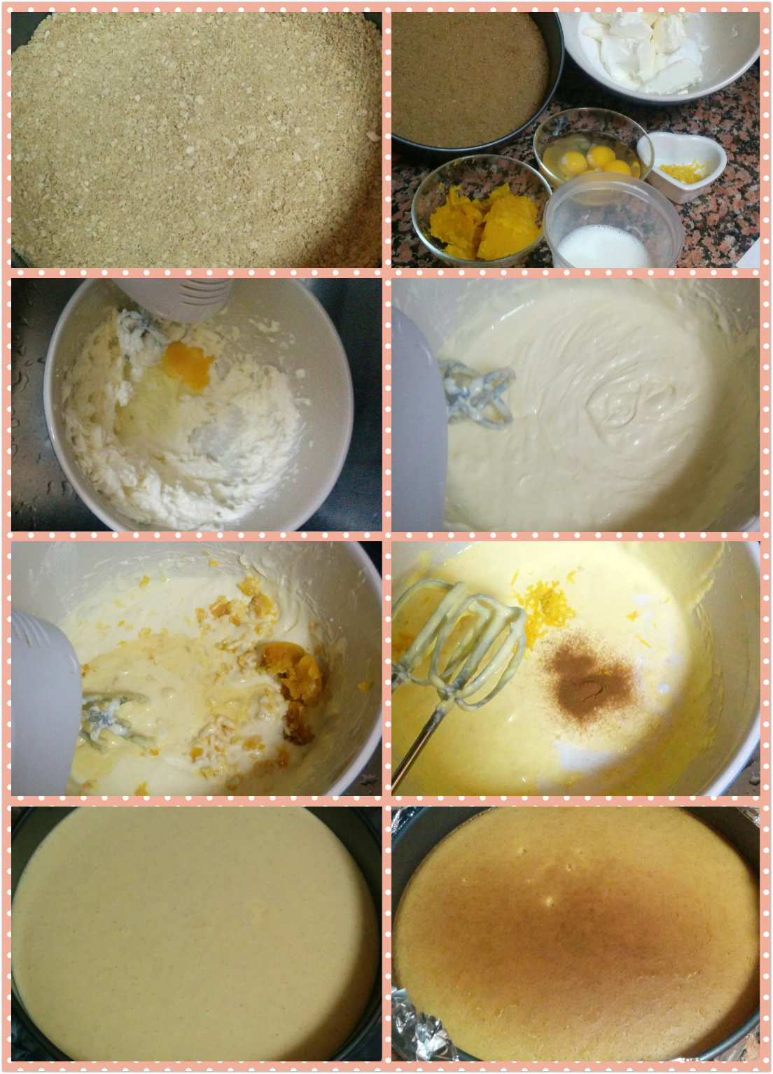 Ingredients: 500 g cream cheese, pumpkin 270 g, eggs 2 egg yolks 2, 120 g sugar, lemon zest half, 60 grams of milk, cinnamon ½ tea spoon