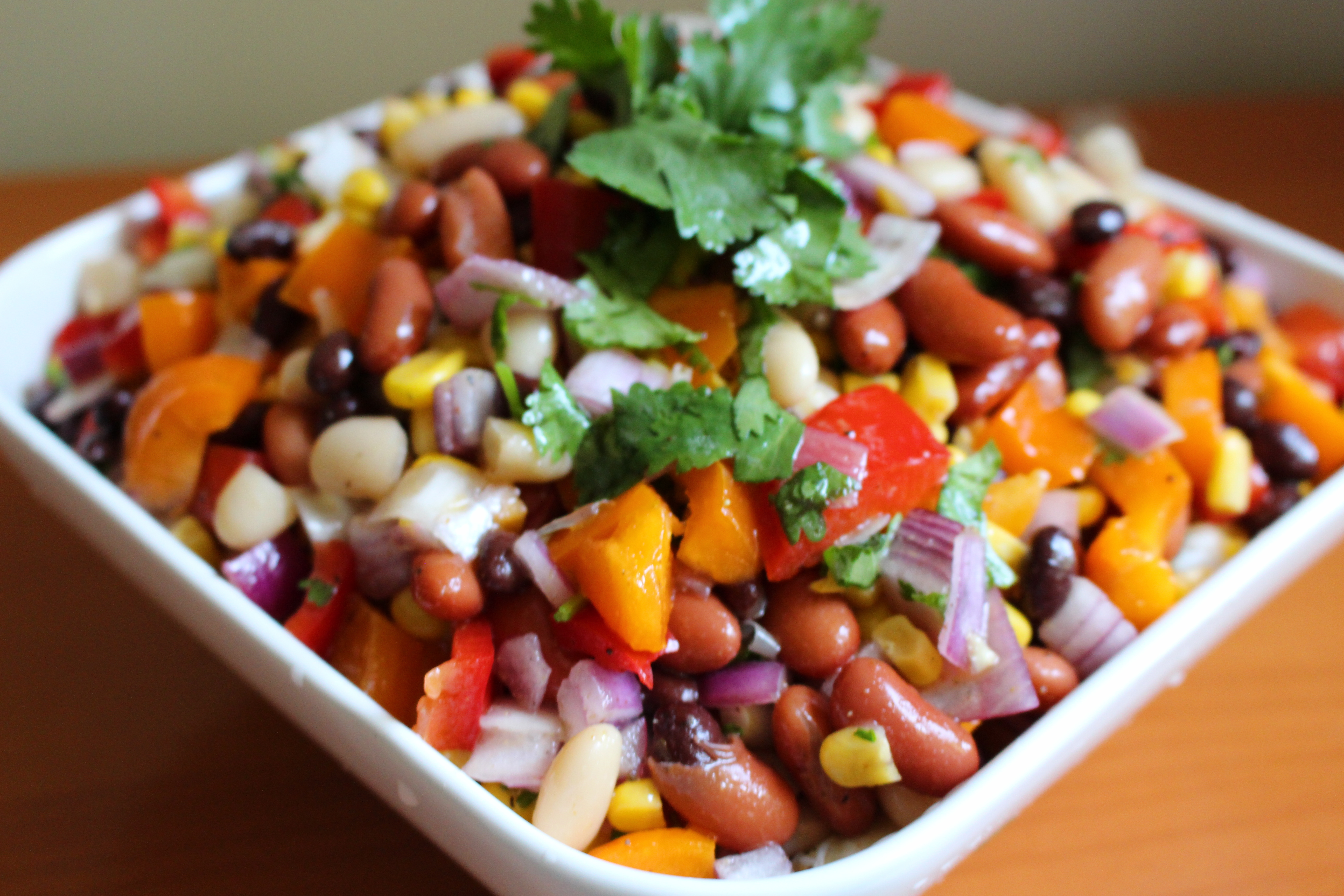 1. In a large bowl, combine beans, bell peppers, frozen corn, and red onion.