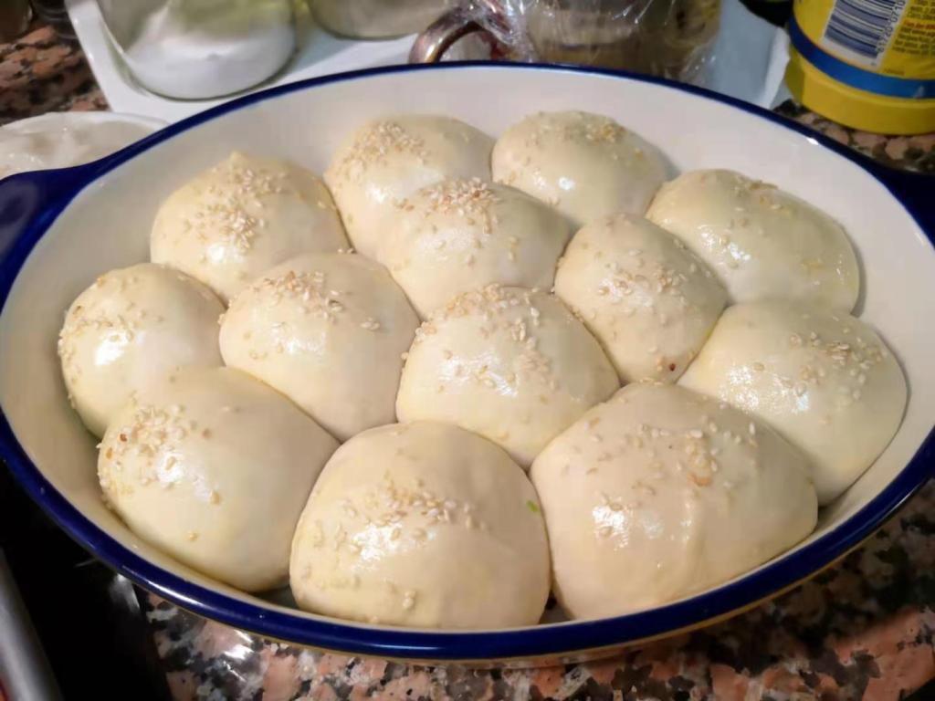 15 minutes later, take the dough out and knead for 10 minutes until the surface is smooth, leave it in the bowl again and cover with the damp cloth for about 1.5 hours to 2 hours until twice in size (depend on the temperature).