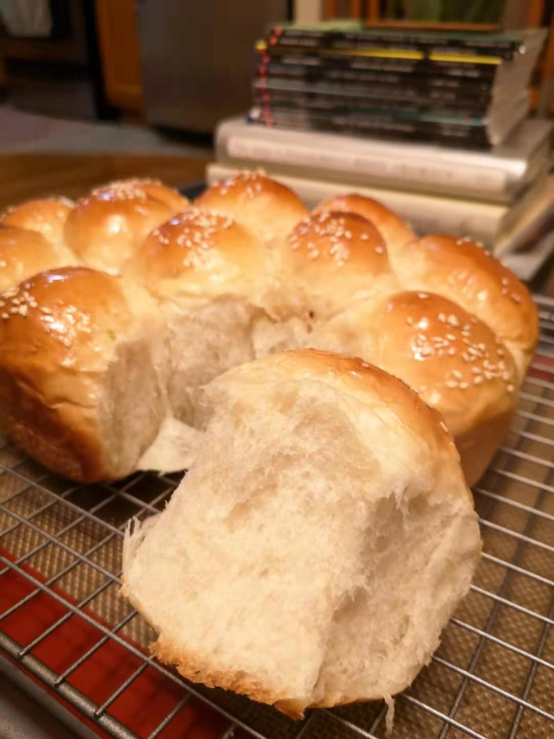 拿出一塊,揉10次,然後滾成一個圓球。然後 其他的也照做。
