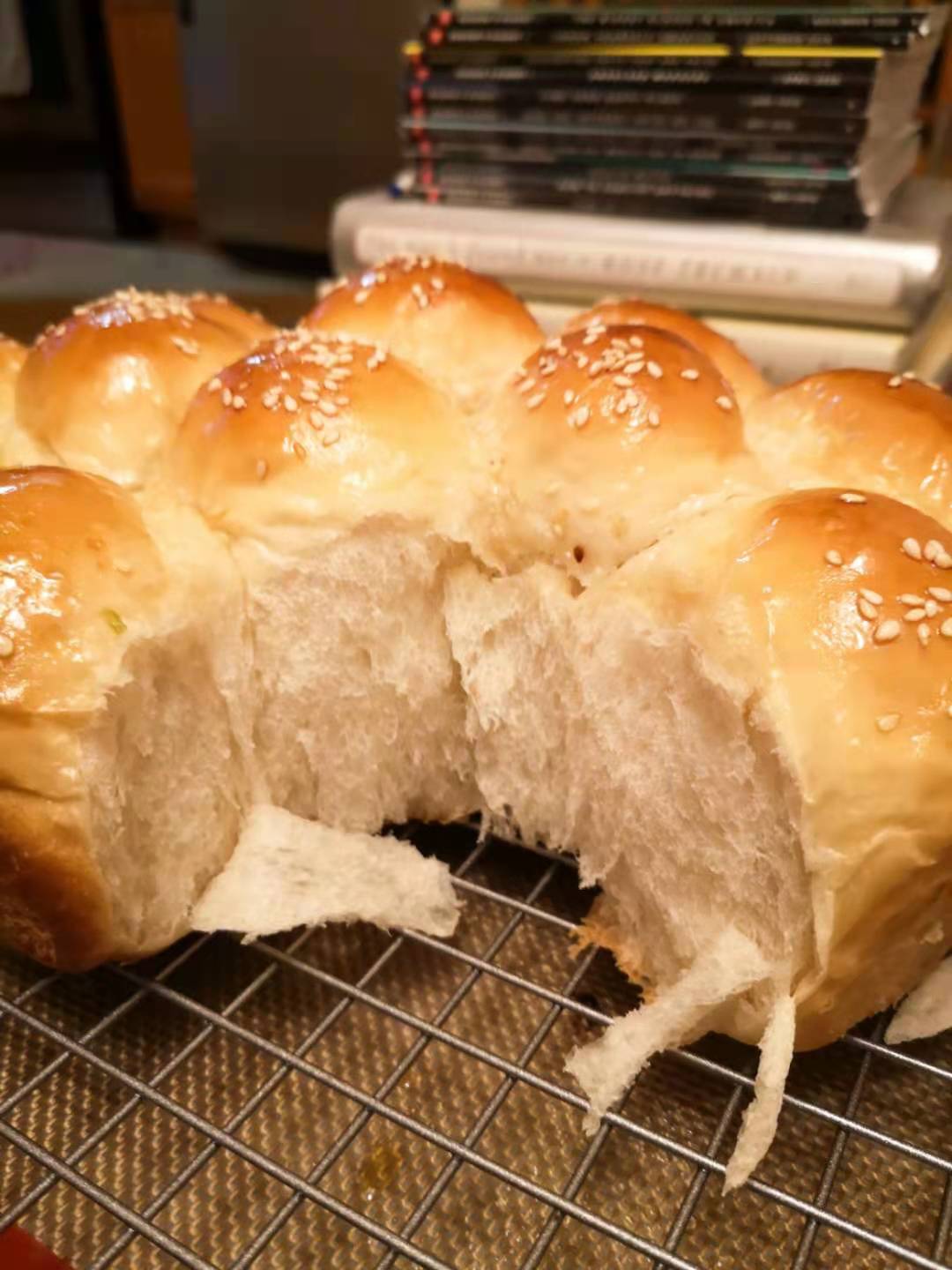 Take the dough out and roll it to a long roll and cut it evenly to 6 pieces.