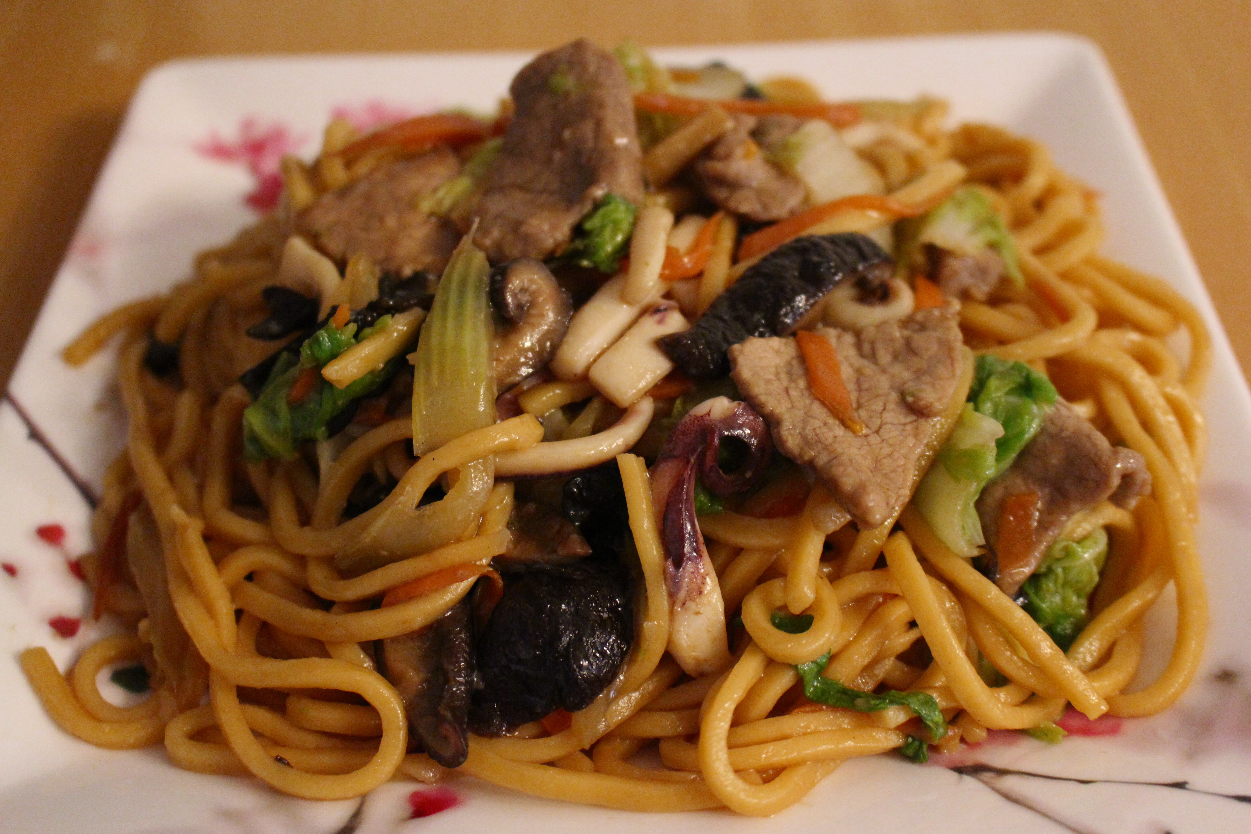 I made my own chicken broth last time, but you can use can broth. And if you do use can broth please only use dark soy sauce for color because the can broth has a lot of salt already.